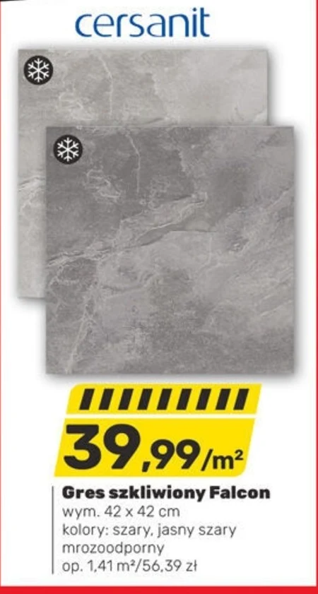 Gres szkliwiony Falcon wym. 42 x 42 cm kolory: szary, jasny szary mrozoodporny op. 1,41 m²/56,39 zł