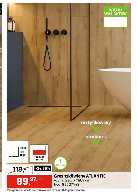 Gres szkliwiony ATLANTIC wym .: 29,7 x 119,5 cm kod: 86227448
