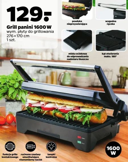 Grill panini 1600 W. Wym. płyty do grillowania 276 x 170 cm