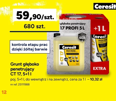 Grunt głęboko penetrujący CT 17, 5+1 l poj. 5+1 l, do wewnątrz i na zewnątrz, cena za 1 l – 10,32 zł nr ref. 25111988