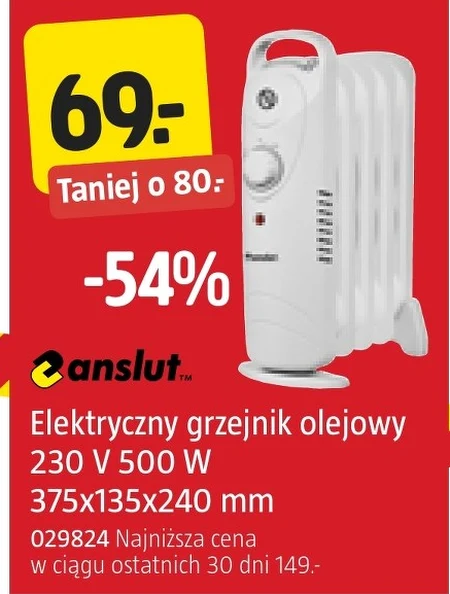 Elektryczny grzejnik olejowy 230 V 500 W 375x135x240 mm