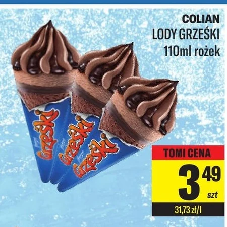 Grześki Lody kakaowe z sosem o smaku czekoladowym i czekoladą w kakaowym rożku waflowym 110 ml - Oferta archiwalna