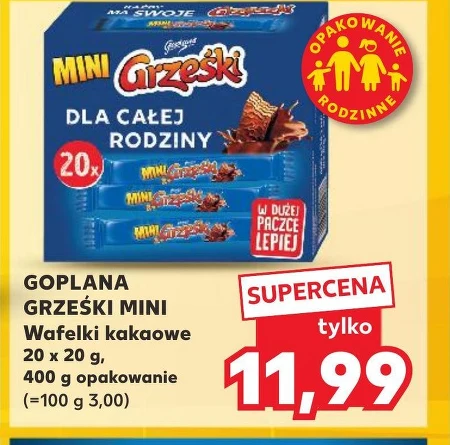 Grześki Mini Wafel przekładany kremem kakaowym w czekoladzie 400 g (20 x 20 g) - Oferta archiwalna