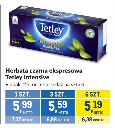 Herbata czarna ekspresowa Tetley Intensive · opak. 25 tor. · sprzedaż na sztuki