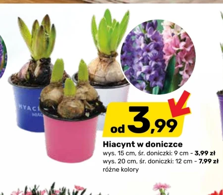 Hiacynt w doniczce Bricomarche jest teraz dostępny w dwóch wysokościach – 15 cm za 3,99 zł i 20 cm za 7,99 zł, w zależności od wybranej wielkości doniczki o średnicy odpowiednio 9 i 12 cm. Roślina występuje w różnych kolorach, dzięki czemu łatwo dopasujesz ją do swojego wnętrza. Idealnie sprawdzi się jako wiosenny akcent dekoracyjny na parapecie, stole lub biurku, wnosząc odrobinę koloru i świeżości do pomieszczenia. Sprawdź aktualną ofertę Bricomarche i wybierz hiacynt w swoim ulubionym kolorze.
