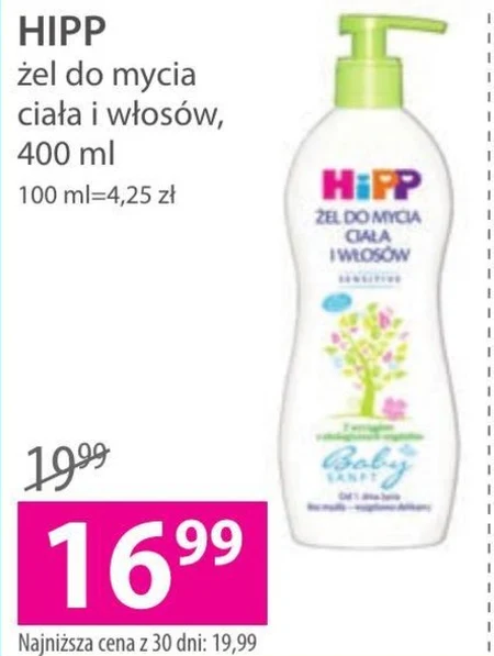 HIPP żel do mycia ciała i włosów, 400 ml. Najniższa cena z 30 dni: 19,99. W trosce o środowisko naturalne - Bez mikroplastiku - Wyprodukowany w zakładzie o neutralnym bilansie emisji CO2 - Przed wyrzuceniem odkręć pompkę Od 1. dnia życia Z wyciągiem z ekologicznych migdałów Oczyszcza wrażliwą skórę i włosy, zachowując ich naturalną warstwę ochronną. Dzięki temu skóra pozostaje miękka i gładka. Żel jest idealny dla całej rodziny - łagodniejszy niż mydło dla niemowląt. Dobrze tolerowany także przez wyjątkowo wrażliwą skórę, skłonną do atopii. Sensitive Stworzony, by zminimalizować ryzyko alergii. - bez parafiny - bez substancji zapachowych uważanych za alergizujące - zgodnie z przepisami prawa - bez olejków eterycznych - bez barwników - bez mydła - bez parabenów - bez silikonów - bez surowców pochodzenia zwierzęcego Pełna troska o wrażliwą skórę. Stefan Hipp Nietestowane na zwierzętach* *testowanie produktów kosmetycznych na zwierzętach jest w UE zabronione.