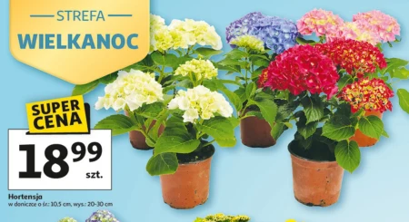 Hortensja w doniczce o śr.: 10,5 cm, wys.: 20-30 cm Hortensja w doniczce to piękna roślina, idealna do upiększenia balkonu, tarasu lub wnętrza. Ozdobna hortensja o wysokości 20-30 cm jest dostępna w ofercie Auchan, gdzie można znaleźć szeroki wybór roślin doniczkowych. Dzięki swoim dużym, efektownym kwiatom, hortensja stanowi wspaniały element dekoracyjny i wprowadza do przestrzeni odrobinę natury. Roślina świetnie sprawdzi się zarówno jako samodzielna dekoracja, jak i część większej kompozycji roślinnej.