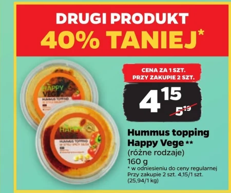 Hummus topping Happy Vege ** (różne rodzaje) 160 g * w odniesieniu do ceny regularnej Przy zakupie 2 szt. 4,15/1 szt. (25,94/1 kg)