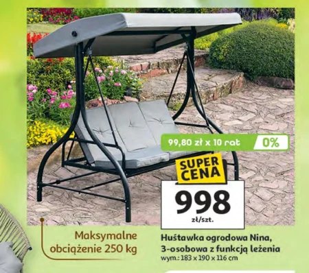 Huśtawka ogrodowa Nina, 3-osobowa z funkcją leżenia wym.: 183 x 190 x 116 cm