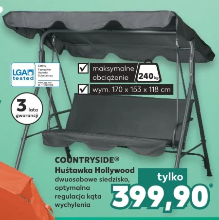 COUNTRYSIDE Huśtawka Hollywood dwuosobowe siedzisko, optymalna regulacja kąta wychylenia.