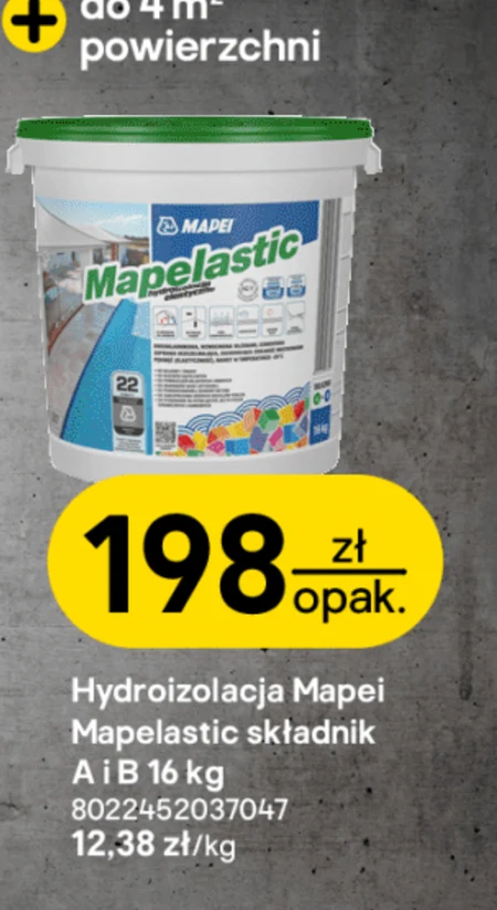 Hydroizolacja Mapei Mapelastic składnik A i B 16 kg 8022452037047 12,38 zł/kg