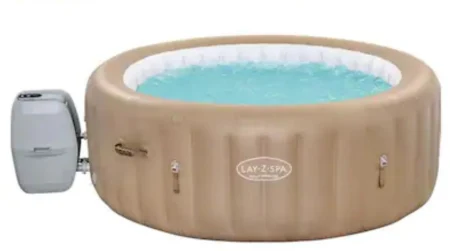 Jacuzii Lay-Z-Spa Palm Spring. Wymiary: 196 x 71 cm, pojemność 916 l, dla 4-6 osób, masujące dysze powietrzne, cyfrowy panel podgrzewania wody, system filtracji wody.
