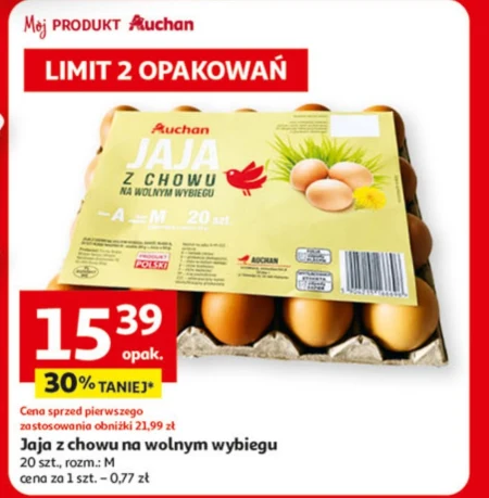 Jaja z chowu na wolnym wybiegu 20 szt., rozm .: M cena za 1 szt. - 0,77 zł