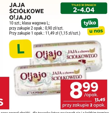 Jaja ściółkowe O!JAJO, 10 sztuk klasy L dostępne są w ofercie Stokrotka w cenie 8,99 zł za opakowanie, a kupując dwa opakowania, zapłacisz tylko 11,49 zł. To doskonały wybór dla codziennego przygotowywania posiłków, zarówno na słodko, jak i na słono. Jaja te sprawdzą się w wielu daniach – od omletów i jajecznicy, przez ciasta i wypieki, po sałatki i pasty. Promocja ta obowiązuje tylko w dniach 2-4 kwietnia, więc warto zaopatrzyć się w ten niezbędny produkt do domu.