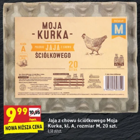 Jajka z chowu ściółkowego. Klasa A. Rozmiar M. 20 sztuk w opakowaniu.
