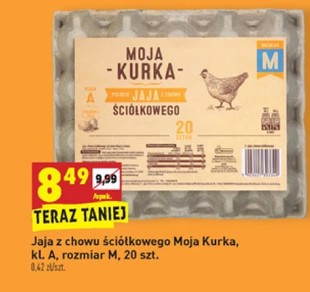 Jaja z chowu ściółkowego, klasa A, rozmiar M, 20 sztuk w opakowaniu.