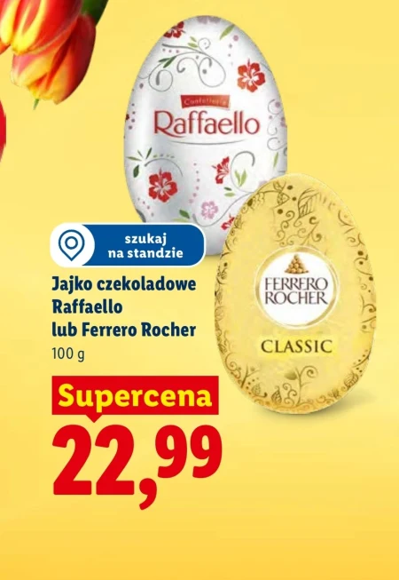 Jajko czekoladowe Raffaello w supercenie 22,99 za opakowanie 100 g czeka na standzie w Lidlu. To doskonały sposób, by sprawić sobie małą przyjemność lub podarować coś wyjątkowego bliskiej osobie. Delikatna, mleczna czekolada otacza chrupiący orzech laskowy i kremową, waniliową piankę, tworząc niezapomniane doznania smakowe. Nie przegap tej okazji, by delektować się klasycznym smakiem Raffaello w atrakcyjnej cenie.