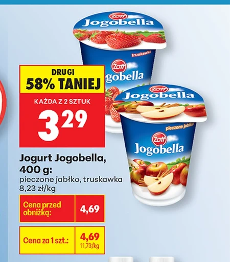 Jogurt Jogobella, 400 g: pieczone jabłko, truskawka 8,23 zł/kg