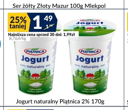 Jogurt naturalny Piątnica 2% 170g 25% taniej