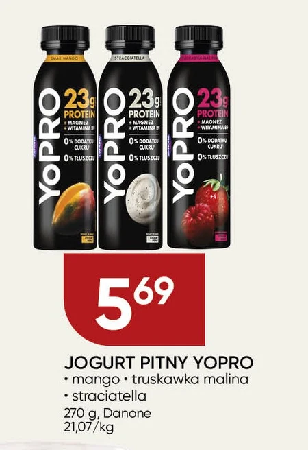 JOGURT PITNY YOPRO · mango · truskawka malina · straciatella 270 g, Danone 21,07/kg
