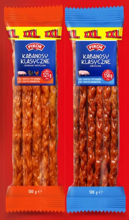 Kabanosy klasyczne, XXL 500 g/1 opak. wieprzowe lub drobiowo-wieprzowe (21,98 zł/1 kg)