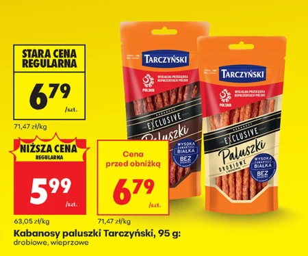 Kabanosy paluszki Tarczyński dostępne są w ofercie Biedronka w cenie 5,99 zł za opakowanie 95 g, co daje 63,06 zł za kilogram. Zazwyczaj kosztują one 6,79 zł. To drobna przekąska idealna do szybkiego zaspokojenia głodu, sprawdzi się podczas podróży, spotkań z przyjaciółmi, czy jako dodatek do kanapek. Kabanosy drobiowo-wieprzowe to propozycja dla tych, którzy lubią klasyczne smaki. Warto skorzystać z tej okazji i zaopatrzyć się w ulubione kabanosy w korzystnej cenie. Oferta ważna od 2026-04-13 do 2026-04-18 Źródło: gazetka Biedronka