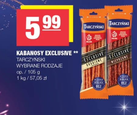 KABANOSY EXCLUSIVE ** TARCZYŃSKI WYBRANE RODZAJE op. / 105 g 1 kg / 57,05 zł