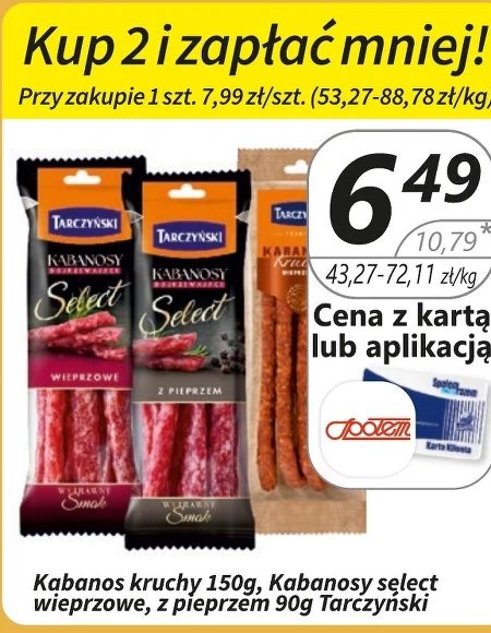 Kabanos kruchy 150g, Kabanosy select wieprzowe, z pieprzem 90g Tarczyński