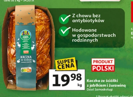 Kaczka ze ściółki z jabłkiem i żurawiną Dział Samoobsługi Kaczka ze ściółki z jabłkiem i żurawiną to propozycja z działu samoobsługi w Auchan, idealna na wyjątkowy obiad lub uroczysty posiłek. Przygotowana z dodatkiem jabłka i żurawiny, oferuje bogaty smak i aromat, który zadowoli nawet wymagających smakoszy. Można ją upiec w całości lub wykorzystać do przygotowania aromatycznego bulionu i innych dań. Sprawdź ofertę w aktualnej gazetce Auchan, aby dowiedzieć się więcej o dostępności.