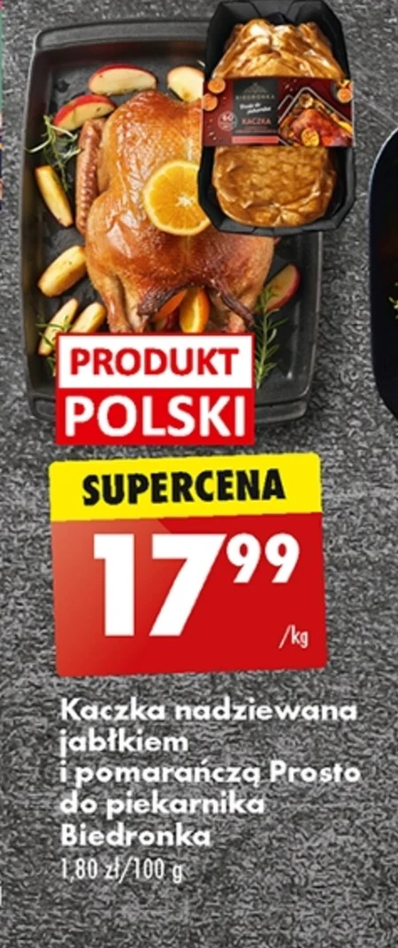 Kaczka nadziewana jabłkiem i pomarańczą Prosto do piekarnika Biedronka 1,80 2l/100 g