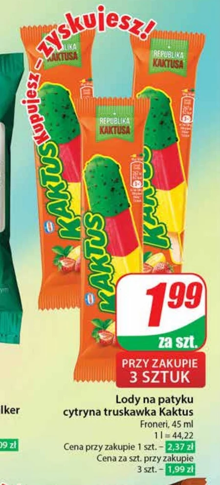 Kaktus Gibek Lody wodne o smaku jabłkowym z polewą o smaku gumy balonowej 45 ml - Oferta archiwalna