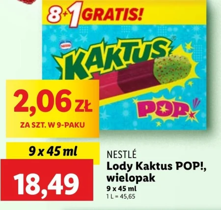 Kaktus Pop! Lody wodne o smaku malinowym i jagodowym 405 ml (9 sztuk) - Oferta archiwalna
