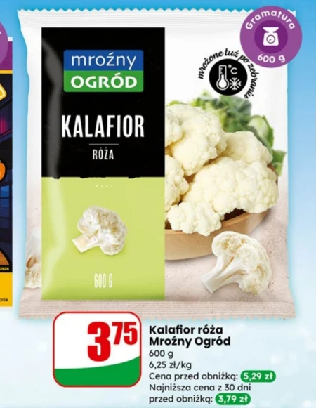 Kalafior róża Mroźny Ogród 600 g 6,25 zł/kg Cena przed obniżką: 5,29 zł Najniższa cena z 30 dni przed obniżką: 3,79 zł