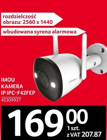 IMOU KAMERA IP IPC-F42FEP. Rozdzielczość obrazu: 2560 x 1440, wbudowana syrena alarmowa.