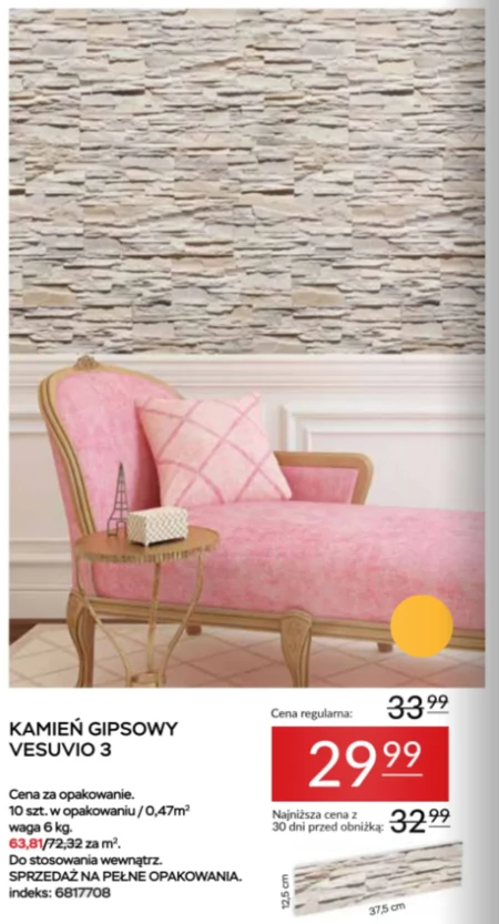 KAMIEŃ GIPSOWY VESUVIO 3 Cena za opakowanie. 10 szt. w opakowaniu / 0,47mª waga 6 kg. 63,81 za m2. Do stosowania wewnątrz. SPRZEDAŻ NA PEŁNE OPAKOWANIA. indeks: 6817708