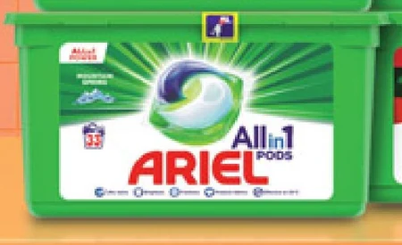 Ariel Allin1 zapewnia wyjątkową moc piorącą w jednej małej kapsułce. Kapsułki do prania Ariel Allin1 PODS Mountain Spring mają unikalną wielokomorową budowę, która sprawia, że składniki są od siebie odseparowane i nie łączą się ze sobą aż do chwili rozpoczęcia prania, dzięki czemu zapewniają wyjątkowo skoncentrowaną moc piorącą. Innowacyjna powłoka kapsułek do prania Ariel ulega całkowitemu rozpuszczeniu w kontakcie z wodą, uwalniając specjalne formuły, które pozwalają usuwać wiele różnych rodzajów plam. Kapsułki Ariel to najlepszy środek piorący Ariel w płynnej formie, zawierający odpowiednią ilość poszczególnych składników piorących. Użyj również płynu do płukania Lenor oraz perełek zapachowych Unstoppables do stosowania podczas prania, aby zapewnić swoim ubraniom jeszcze większą miękkość i świeżość. UWAGA. Ten produkt może być szkodliwy i powodować poważne obrażenia. Przechowuj kapsułki Ariel poza zasięgiem dzieci. Więcej informacji znajdziesz na stronie keepcapsfromkids.eu. 1 kapsułka na 1 pranie. Umieść kapsułkę w bębnie pralki i połóż na niej ubrania, aby skutecznie wykorzystać produkt.