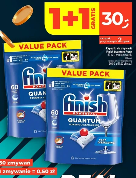 Kapsułki do zmywarki Finish Quantum Fresh 60 szt. w opakowaniu 0,50 zł/szt. najniższa cena z 30 dni przed obniżką 60,00 zł (1,00 zł/szt.)