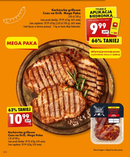 Karkówka grillowa Czas na Grill, Mega Paka 1,10 zł/100 g Cena przed obniżką: 29,99 zł/kg, 63% mniej Cena regularna: 29,99 zł/kg, 63% taniej