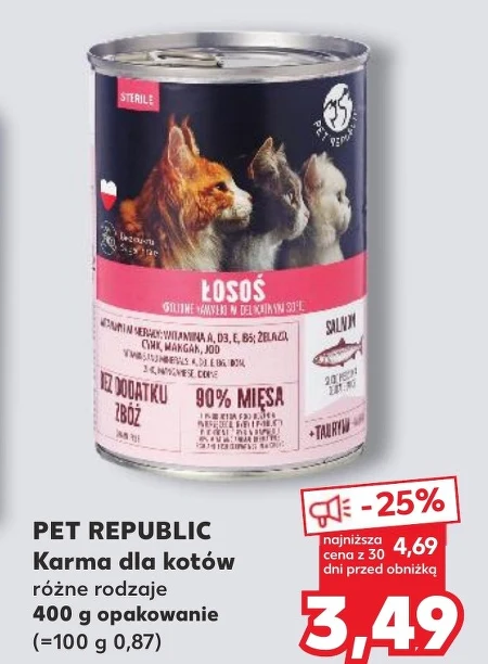 PET REPUBLIC Karma dla kotów różne rodzaje 400 g opakowanie (=100 g 0,87)