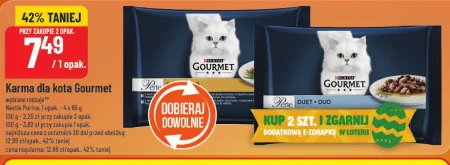 Karma dla kota Gourmet wybrane rodzaje** Nestle Purina, 1 opak. - 4 x 85 g 100 g - 2.20 zł przy zakupie 2 opak. 100 g - 3.82 zł przy zakupie 1 opak. najniższa cena z ostatnich 30 dni przed obniżką: 12.99 zł/opak.. 42% taniej cena regularna: 12.99 zł/opak.. 42% taniej Gourmet to doskonały wybór dla wymagających kotów, zapewniający im pełnowartościowy posiłek bogaty w smaczne kawałki w sosie, idealny do codziennego żywienia. Wysokiej jakości karma dla kota Gourmet zaspokoi nawet najbardziej wybredne podniebienia, dbając o zdrowie i kondycję Twojego pupila, a promocja to świetna okazja na zakup karmy premium w atrakcyjnej cenie. Regularne stosowanie karmy Gourmet Purina wspiera zdrową skórę i lśniącą sierść, zapewniając kotu witalność i dobre samopoczucie.