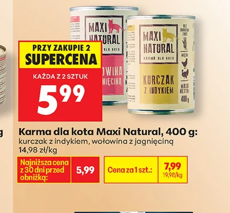 Karma dla kota Maxi Natural, 400 g: kurczak z indykiem, wołowina z jagnięciną 14,98 zł/kg