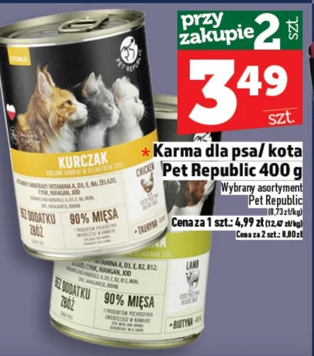 Karma dla psa/ kota Pet Republic 400 g Wybrany asortyment Pet Republic (8.73zł/kg) Cenaza 1 szt .: 4,99 zł (12,47 zł/kg) Cena za 2 szt .: 0,00zł