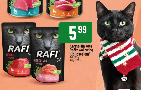 Karma dla kota Rafi z wołowiną lub łososiem* DNP, 300 g 100 g - 2,00 zł