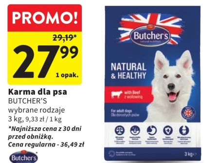Karma dla psa BUTCHER’S, wybrane rodzaje jest dostępna w ofercie Intermarché w cenie 27,99 zł za opakowanie 3 kg, co daje 9,33 zł za kilogram. To najniższa cena z ostatnich 30 dni przed obniżką z ceny regularnej 36,49 zł. Karma ta zapewnia pełnowartościowy posiłek dla Twojego czworonoga, dostarczając niezbędnych składników odżywczych. Sprawdza się jako codzienna dieta, dbając o zdrowie i witalność psa. Warto skorzystać z tej okazji, aby zapewnić swojemu pupilowi wysokiej jakości karmę w atrakcyjnej cenie.