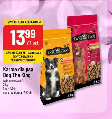 Karma dla psa Dog The King wybrane rodzaje* 3 kg 1 kg - 4,66 cena regularna: 17,99 zł