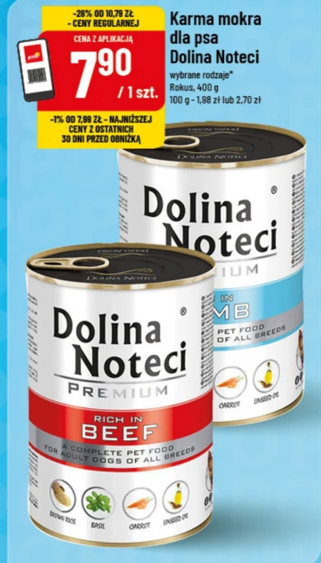 Karma mokra dla psa Dolina Noteci wybrane rodzaje* Rokus, 400 g 100 g - 1,88 zł lub 2,70 zł