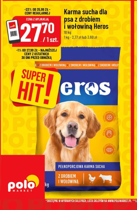 Karma sucha dla psa z drobiem i wołowiną Heros 10 kg