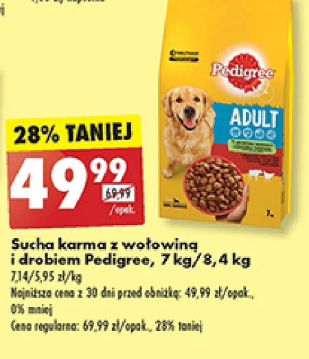 Sucha karma z wołowing i drobiem Pedigree, 7 kg/8,4 kg 7,14/5,95 zł/kg Nojnitsza ceno z 30 dni przed obniżką: 49,99 zł/opak, 0% mniej Cena regularna: 69,99 zł/opak, 28% taniej