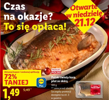 Polski świeży karp, płat ze skórą 100 g