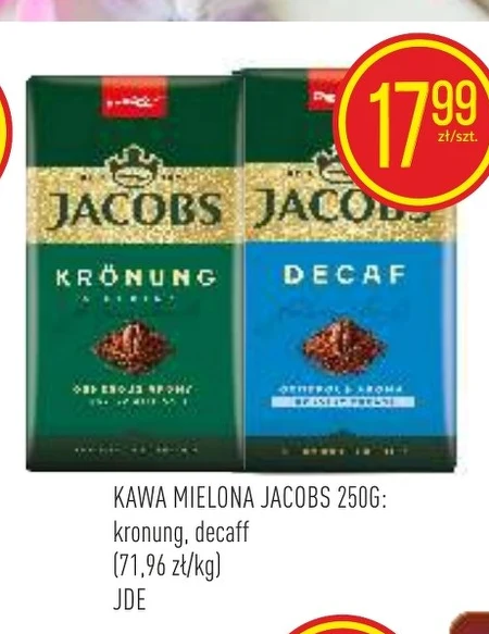 KAWA MIELONA JACOBS 250G: kronung, decaff (71,96 zł/kg) JDE